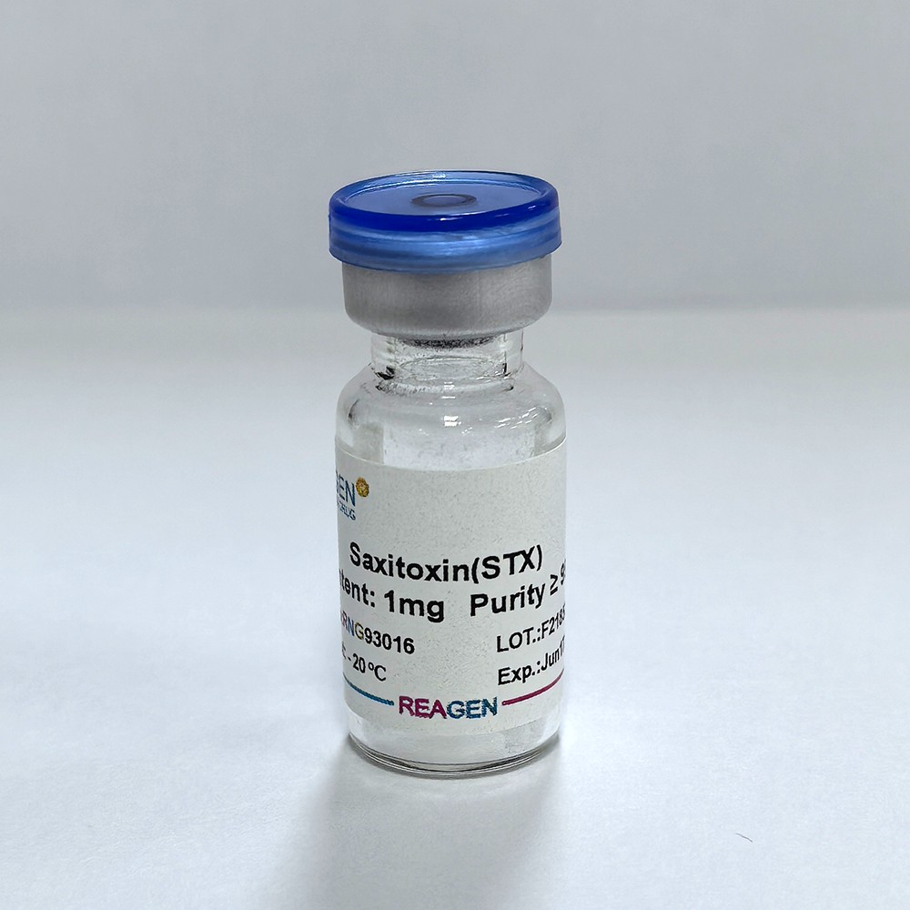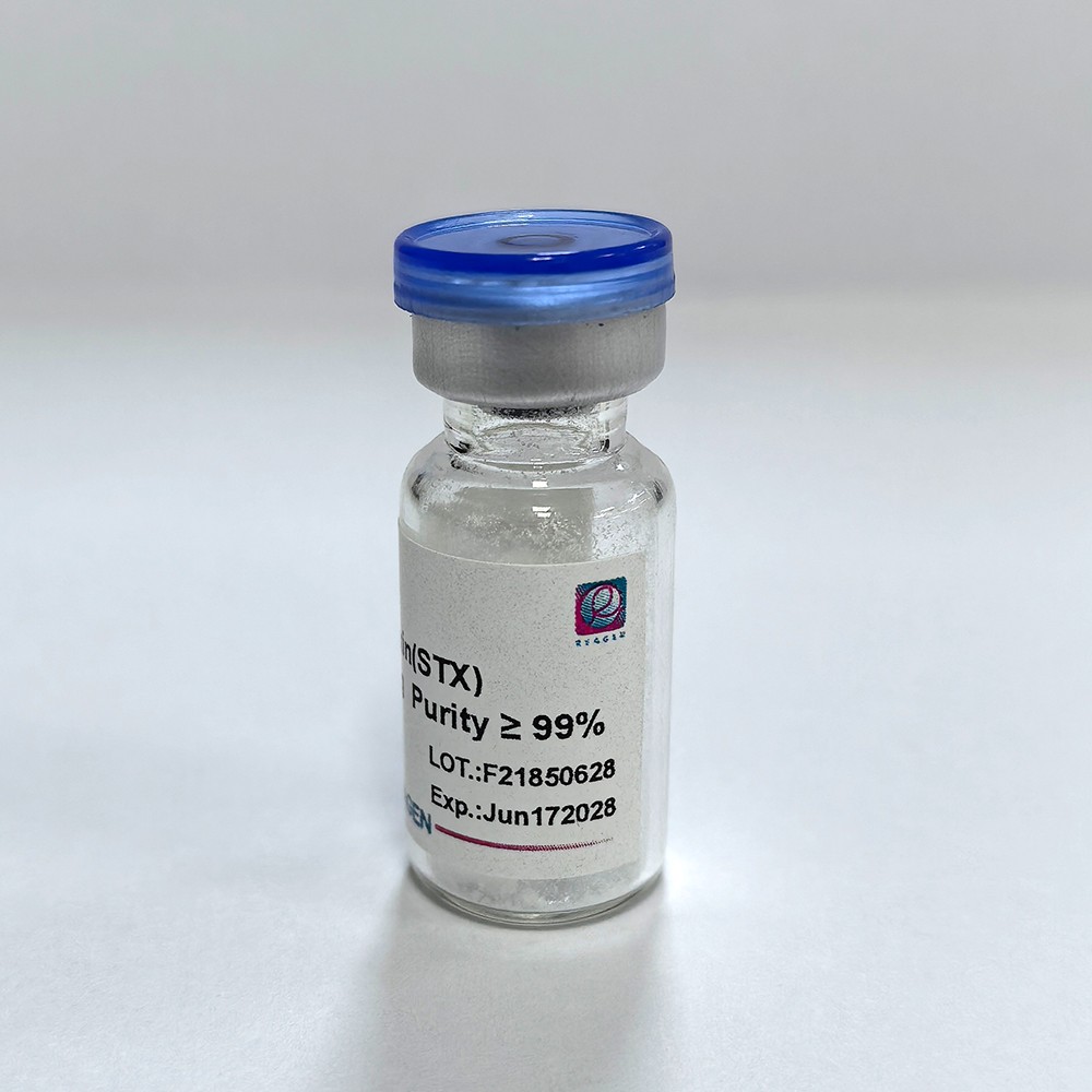 Saxitoxin (STX) are a group of potent neurotoxins produced by certain species of marine dinoflagellates and freshwater cyanobacteria. They are the primary toxins responsible for paralytic shellfish poisoning (PSP). Saxitoxins can accumulate in shellfish and other marine organisms, posing significant health risks to humans and wildlife. Saxitoxin?is more and more important in red tide detection,molecular biology,neurobiology,medical diagnosis,medicine exploitation,food safety and warfare agent?application.